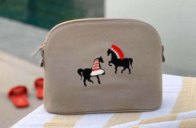 Introducing a new addition to our make up bags that will keep your cosmetics in style. The Horse make up bag offers a cheerful design with horse motifs crafted with embroidery and beads. Our new make up bag comes in orange, black and beige, offering three size options to meet different requirements.